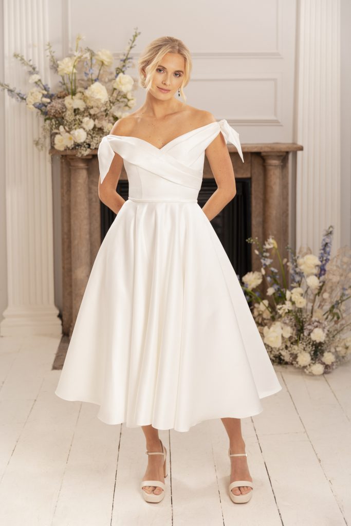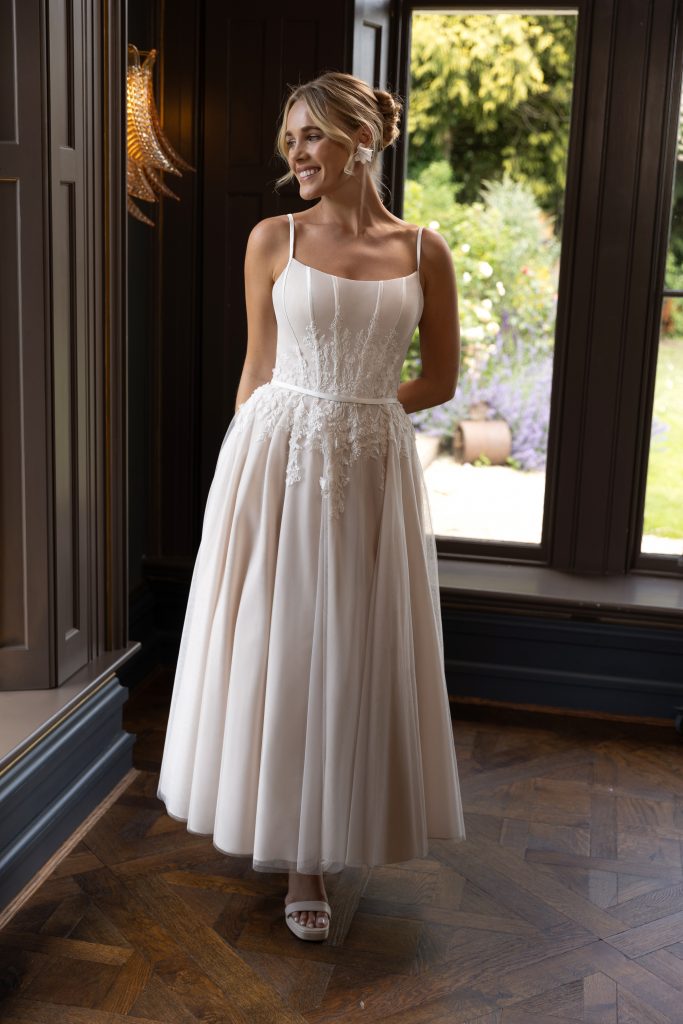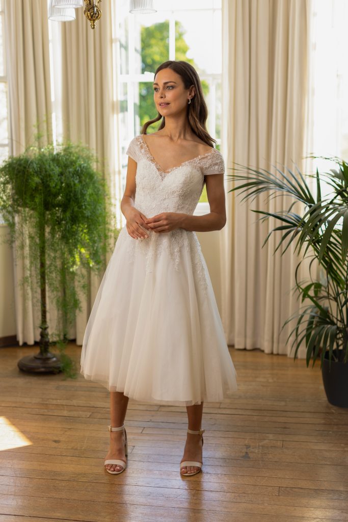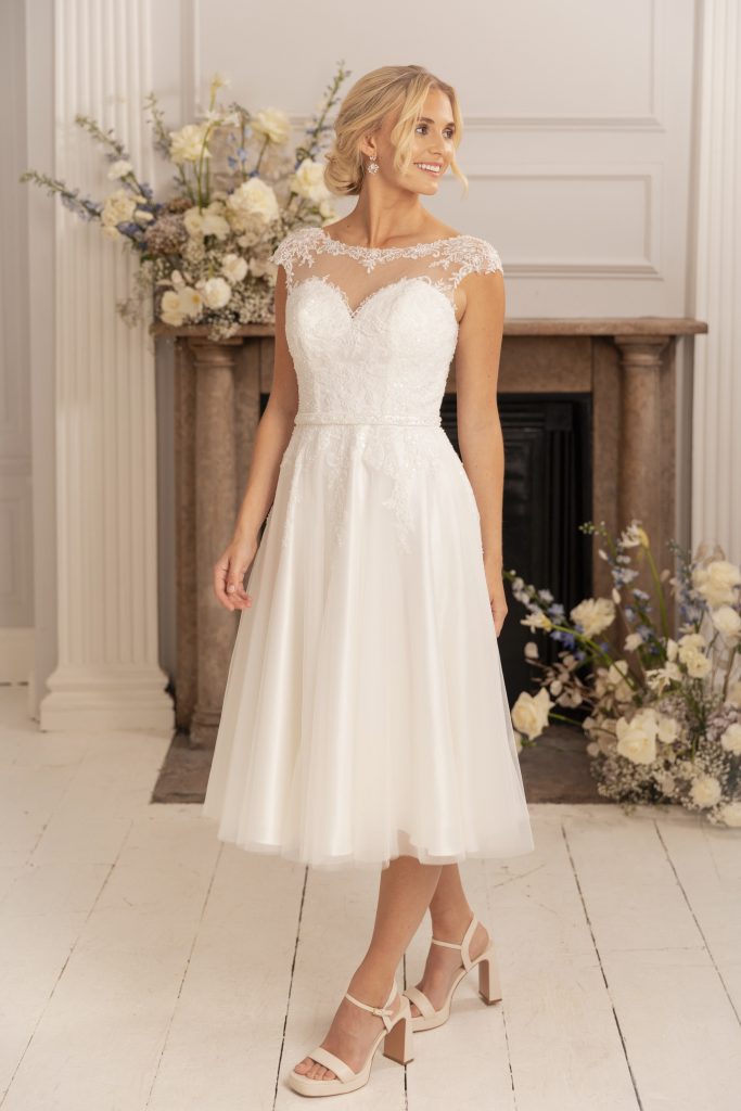Beautiful, vintage inspired tealength wedding dresses from Brighton Belle and Emma Bridals.